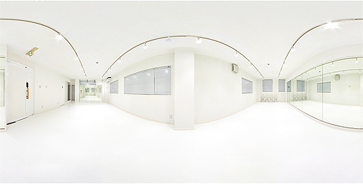 天井から壁、床までオールホワイトな近未来的で清潔なスタジオ。